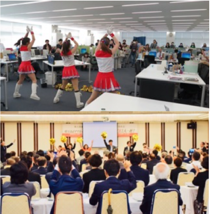 企業の決起大会や周年行事、忘年会、送別会、新年や夏のイベント、お祭りなど様々なシーンに出張して、皆様のことをチアで応援します。「元気をもらえる!」と大評判の応援プログラムです。また、講演会とセットで実施することもできます。