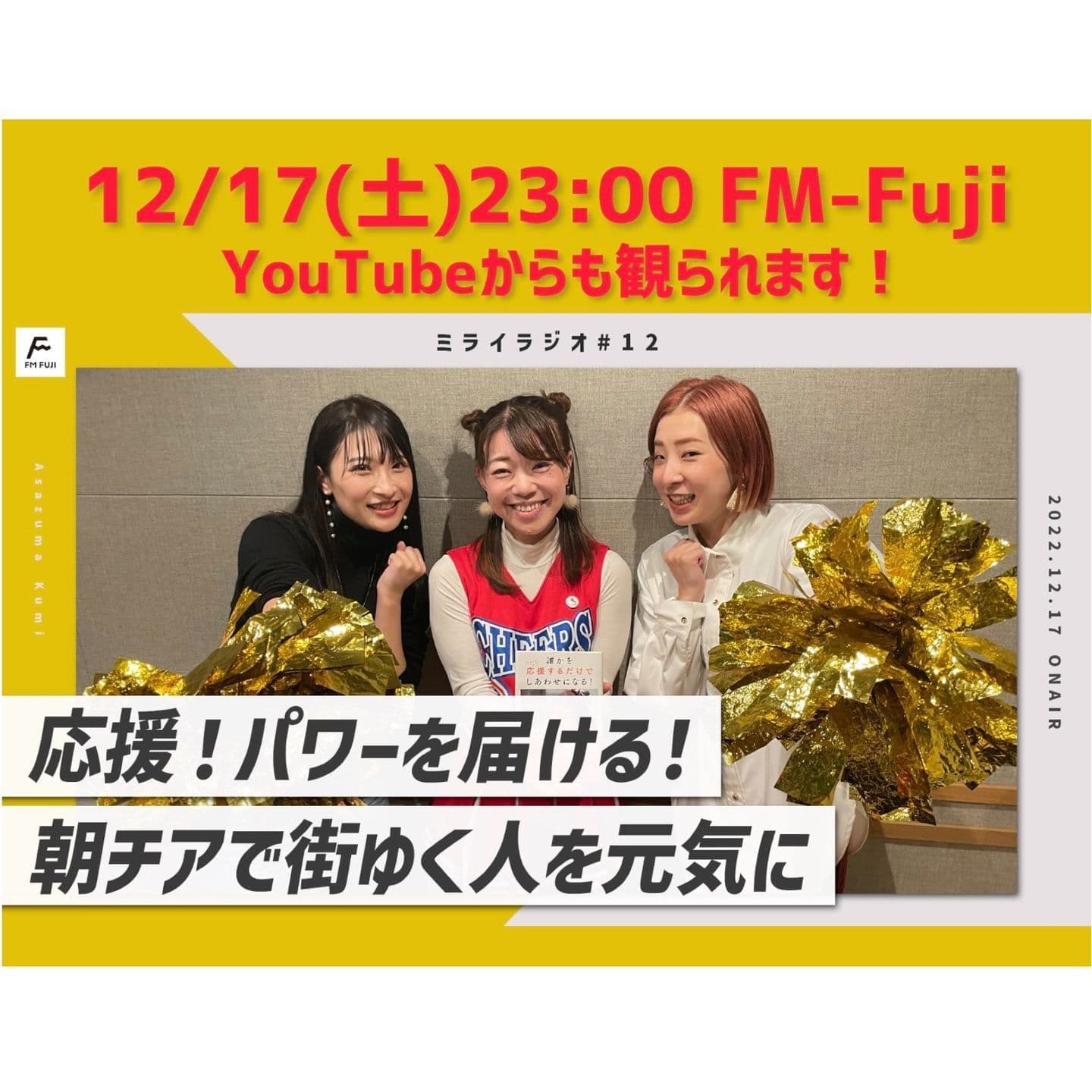 2022年12月17日(土)23:00 FM FUJI 二瓶ひかる・渡邉アンナ「ミライラジオ」出演 YouTubeで聴けます→https://m.youtube.com/watch?v=6l6IIBZOoMI&feature=youtu.be